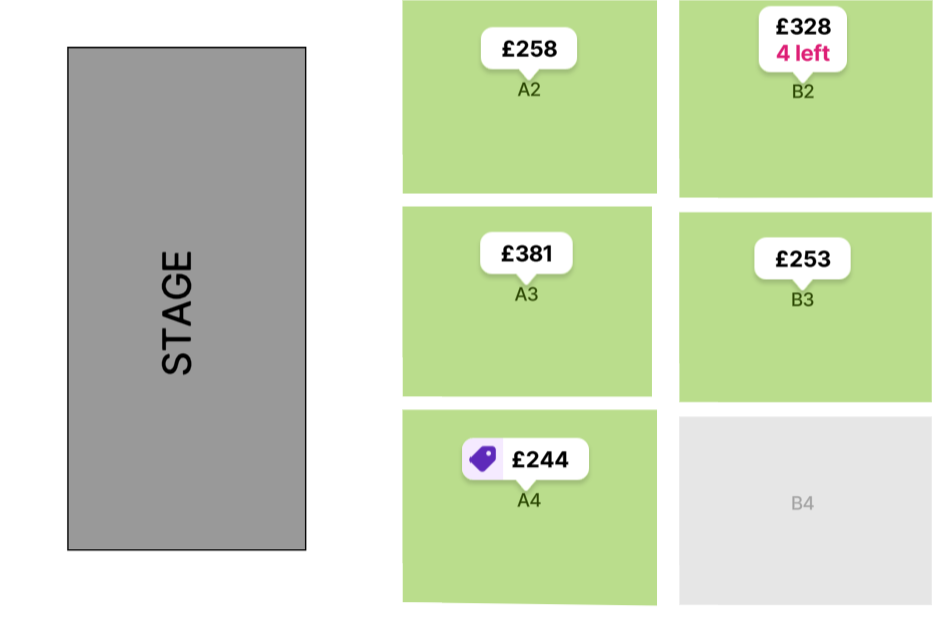 I  have some wonderful seats for you in block A2 & 4 close to the stage for Friday the 18th of September 2026.