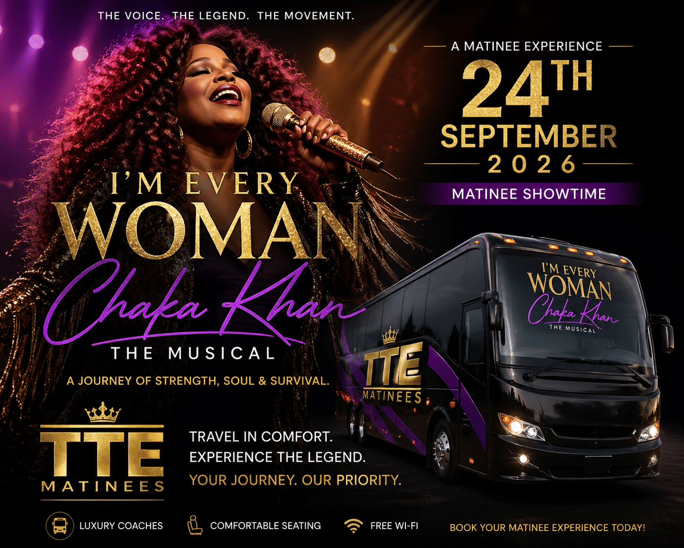 I’m every woman, The Chaka Khan musical a matinee on Thursday the 24th of September 2026 at 2.30pm